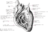 肺動脈弁【はいどうみゃくべん】 (肺動脈弁は右心室から肺動脈弁への入口にある弁。動脈口の周縁から起こる内膜ヒダでできている。ヒダはポケットのように半月状を呈し、半月弁といわれ、前半月弁・右半月弁・左半月弁の3枚からなる。)