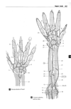 総骨間動脈【そうこうつかんどうみゃく】 Trunk formed by the following vessels given off by the ulnar artery or branch arising from the division of the brachial artery (embryological) at the superior border of the pronator teres.(総骨間動脈は尺骨動脈の起始近く、橈骨結節の遠位で本幹より分岐し、背側に向かい約1cm走ったのち、前腕骨間膜の付近で2枝に分かれる。)