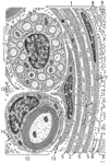 灰白質【かいはくしつ】 Mass of neural cell bodies.(脳と脊髄では神経細胞体の集合している部分は有髄神経線維がないか、きわめて少なく灰色を呈するところからこの名称がある。脊髄では中心管を囲みH状を呈する。大脳半球と小脳では表面に神経細胞体が帯状分布するので、これをとくに皮質とよんでいる。灰白質には神経細胞の核周体、樹状突起、輪索起始部、軸索の終末やシナプス、神経膠細胞、血管が存在している。同じ機能をもつ神経細胞の細胞体の集団に区分し、これを神経核とよぶ。)