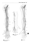 固有掌側指神経【こゆうしょうそくししんけい】 Terminal branches of the common palmar digital nerves. They supply the skin of the palmar side of the radial 3'A fingers and the skin of the dorsal side of the 2'A radial distal phalanges.(固有掌側指神経は総掌側指神経の終枝。掌側では橈側3と1/2指の皮膚を、背側では橈側2と1/2指の皮膚を支配する。)