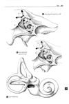 卵形嚢陥凹【らんけいのうかんおう】 Elongated depression in the medial wall of the vestibule. It lodges the portion of the utricle between the posterior bony ampulla and common bony limb.(前庭内側壁中の細長いくぼみ。後膨大部と総脚の間にある卵形嚢の部分をいれる。 (Feneis))