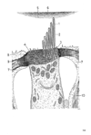 蓋膜(蝸牛管の)【がいまく(がぎゅうかんの)】 Fibrous membrane that is thin at its attachment site on the vestibular lip. It overlies the organ of Corti and ends with a free margin outside the outer row of hair cells.(蝸牛管の蓋膜はラセン板縁の表面から外方に舌状に突出する。内有毛細胞からはじまってヘンゼン細胞の表面に至るまでのコルチ器の前表層をおおっており、その下面は内有毛細胞および外有毛細胞の聴毛と接触している。)
