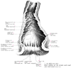 肛門【こうもん】 Inferior opening of the anal canal, encircled by the subcutaneous and superficial parts of external anal sphincter muscle.(肛門は消化下管の末端が外部へ開く部分である。外肛門括約筋の表在部と皮膚部に囲まれた肛門管の開口。 実質的な機能を持つ肛門は、むしろ肛門管と考えてよい。)