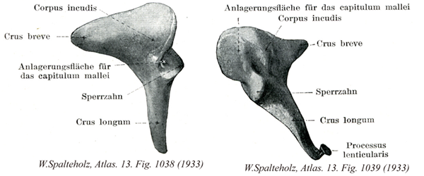 - 1039_00【Incusキヌタ骨;砧骨 Incus】 Ossicle interposed between the stapes and the head of the malleus.