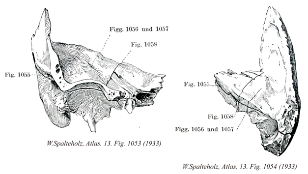 - 1054_00【Temporal bone側頭骨 Os temporale】 Bone located between the occipital, sphenoidal, and parietal bones. It consists of petrous, tympanic, and squamous parts.