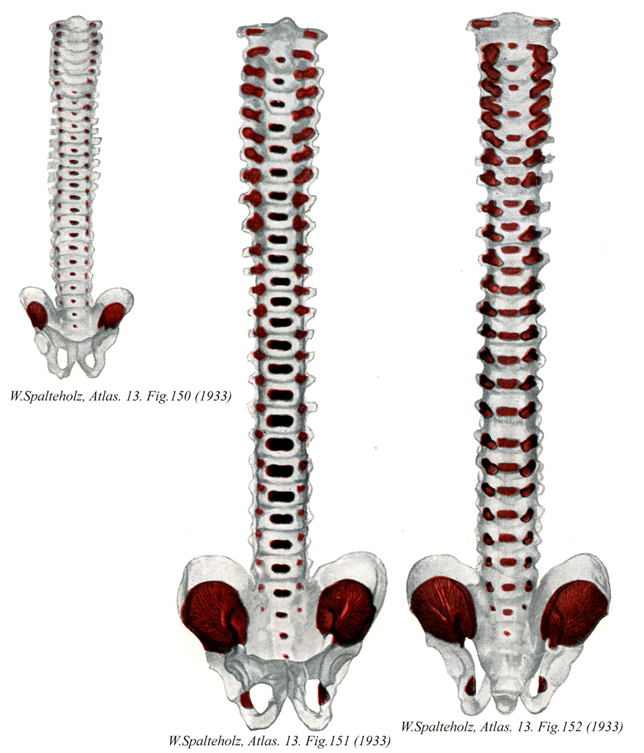 →(脊椎は消化器系の背方,脊髄の腹方にある分節性の器官で,不対性ではあるが左右対称の形にできていて,正中面がこれを折半する.脊椎は列びつながって柱状をなし,椎間円板および他の諸靱帯とともに,胴の支軸となる骨格すなわち脊柱を形成する.)