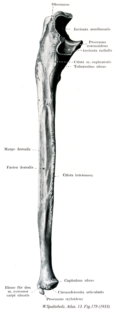 - 178_02【Posterior border of ulna; Posterior margin of ulna後縁;背側縁(尺骨の) Margo posterior ulnae; Margo dorsalis ulnae】