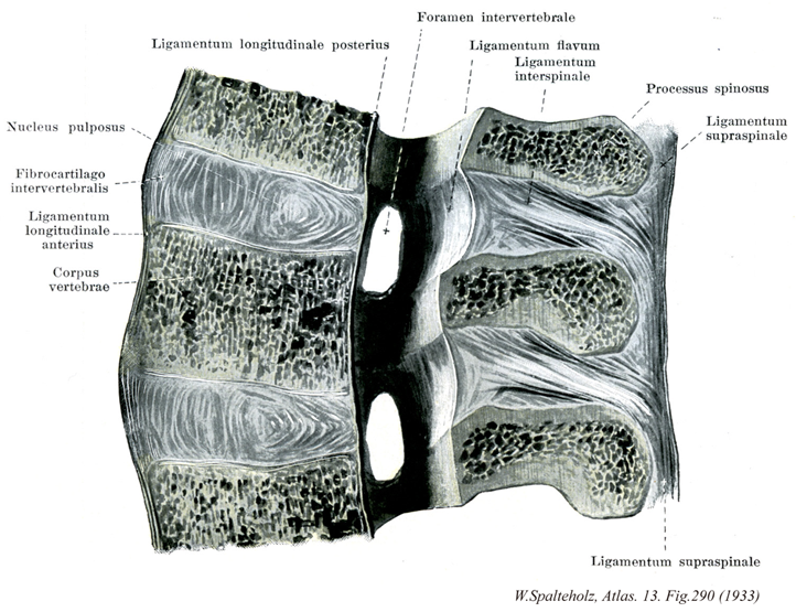 - 290_08【Interspinous ligaments棘間靱帯 Ligamenta interspinalia】 Broad ligaments extending between adjacent spinous processes of the vertebrae.