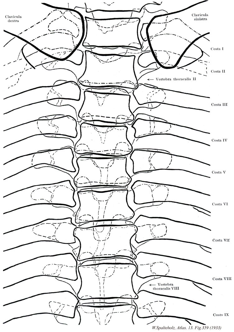 - 359_00【Thoracic vertebrae [TI-TXII]胸椎[T1-T12] Vertebrae thoracicae [T I-T XII]】 The twelve thoracic vertebrae.