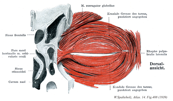 →(眼輪筋の涙嚢部として以前は知られていた。これは眼瞼部の深部である。)