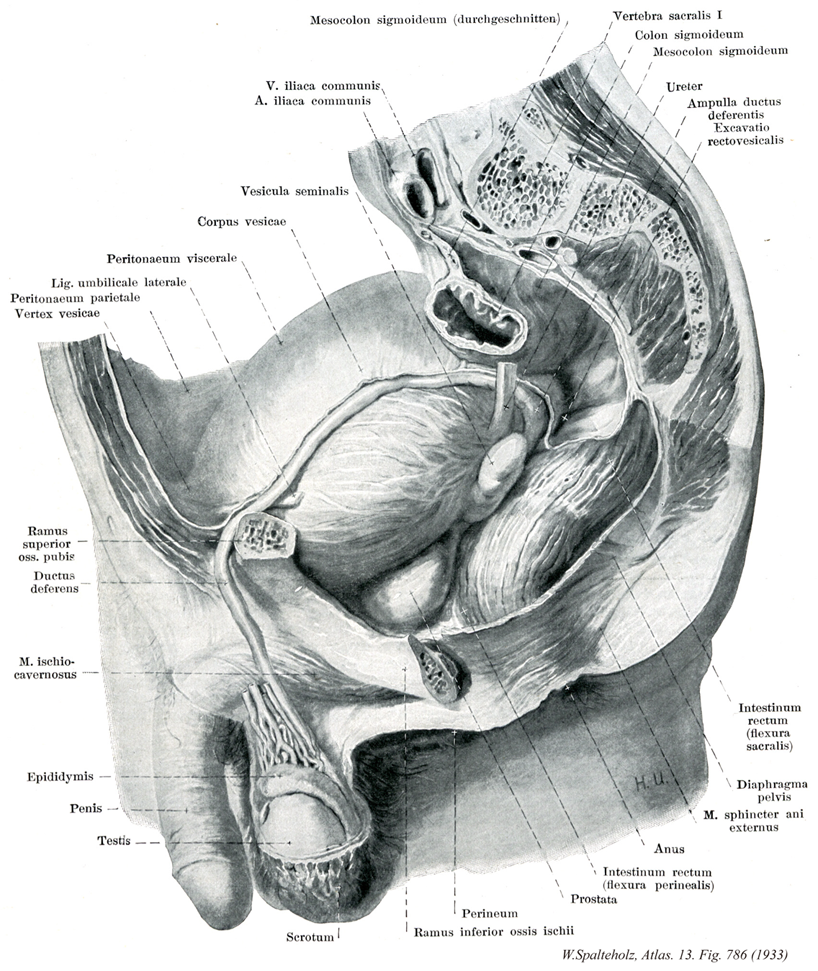 - 786_11【Ductus deferens; Deferent duct精管 Ductus deferens; Vas deferens】 The course of the ca. 50 cm long ductus deferens is initially tortuous, then becomes straight. It is a continuation of the duct of epididymis, opening into the urethra.