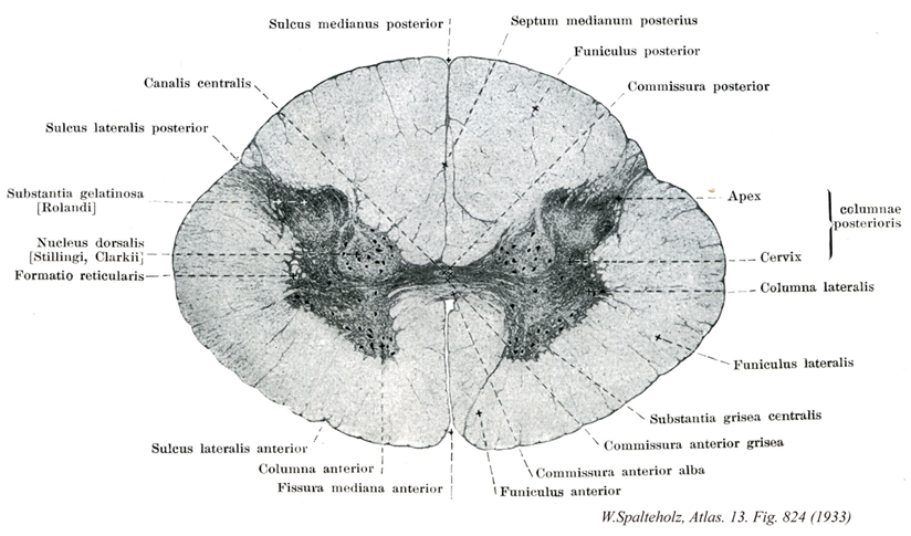- 824_13【Posterior column of spinal cord grey; Posterior grey column of spinal cord; Posterior column of spinal cord gray; Posterior gray column of spinal cord後柱;背側柱(脊髄の) Columna grisea posterior; Columna posterior (Medullae spinalis)】