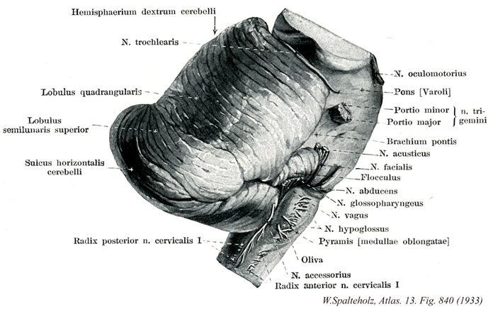 - 840_00【Metencephalon; Pons and cerebellum後脳;橋と小脳 Metencephalon; Pons et cerebellum】 Part of the rhombencephalon consisting of the pons and cerebellum.