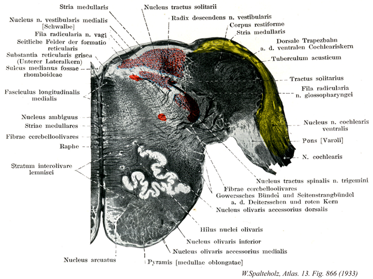 - 866_18Gierke, Respiratory bundle of【Solitary tract孤束 Tractus solitarius】 Bundle of efferent fibers from cranial nerves VII, IX, and X to the nuclei of the solitary tract.