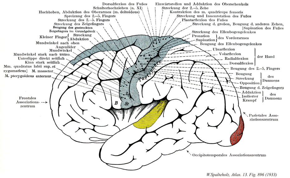 →( 頭頂葉連合野parietal associaction cortex(5・7野)は視覚野と体性感覚野からの情報を統合して、運動野と運動前野へ出力する。受動的注意に関係するほか、感覚刺激や視覚刺激にもとづいた行動の動機付けに影響を与える。(解剖学講義))