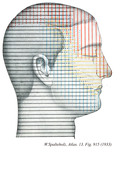 - 915_04【Ophthalmic nerve; Ophthalmic division [Va; V1]眼神経 [三叉神経第1枝] Nervus ophthalmicus [Va; V1]】 First division of the trigeminal nerve, which passes through the superior orbital fissure.