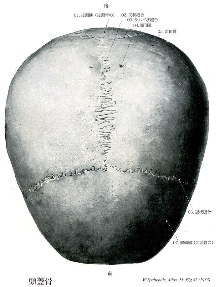 - 082_02【Sagittal suture矢状縫合 Sutura sagittalis】 Suture that joins the right and left parietal bones in the midline.