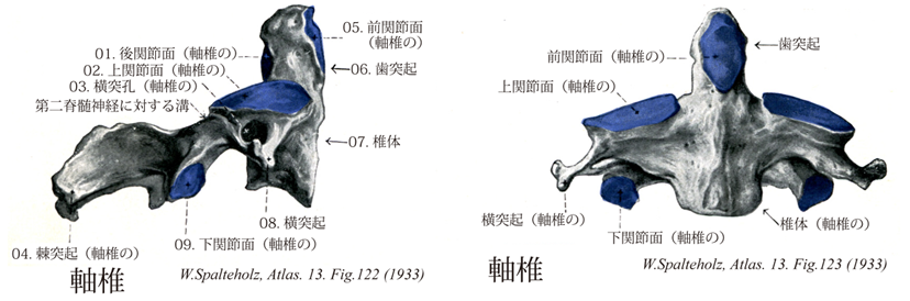 123_06【Inferior articular facet of axis下関節面(軸椎の) Facies articularis inferior (Axis)】 →(第三頚椎に対する下関節面)