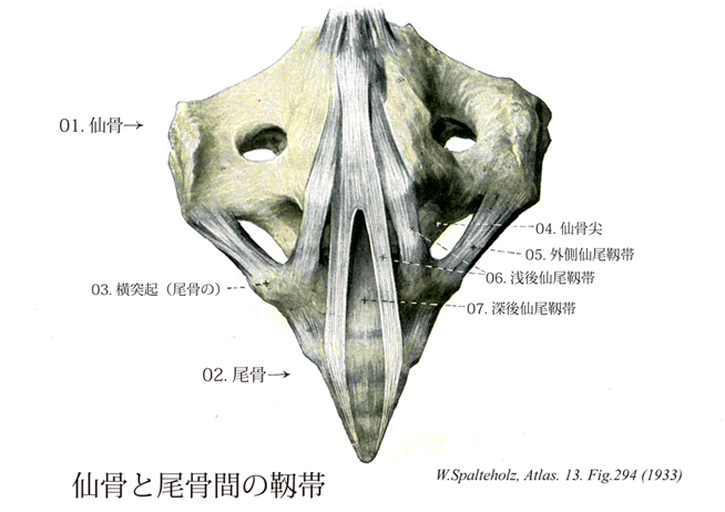 - 294_07【Deep posterior sacrococcygeal ligament; Deep dorsal sacrococcygeal ligament深後仙尾靱帯 Ligamentum sacrococcygeum posterius profundum; Ligamentum sacrococcygeum dorsale profundum】