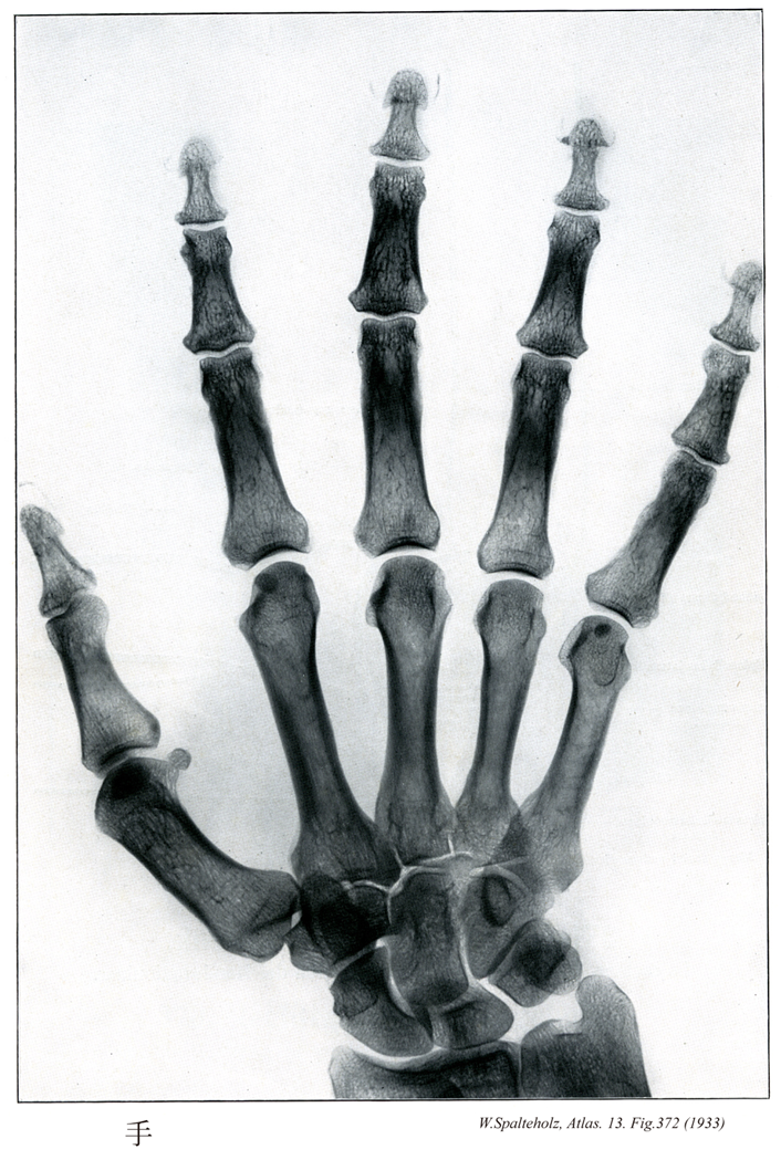 →(手は上肢のうち橈骨手根関節より遠位の部分。手根と中手に区別され、手根と中手の前面を手掌、後面を手背という。皮膚節において第六頚神経、第七頚神経、第八頚神経のレベル。)