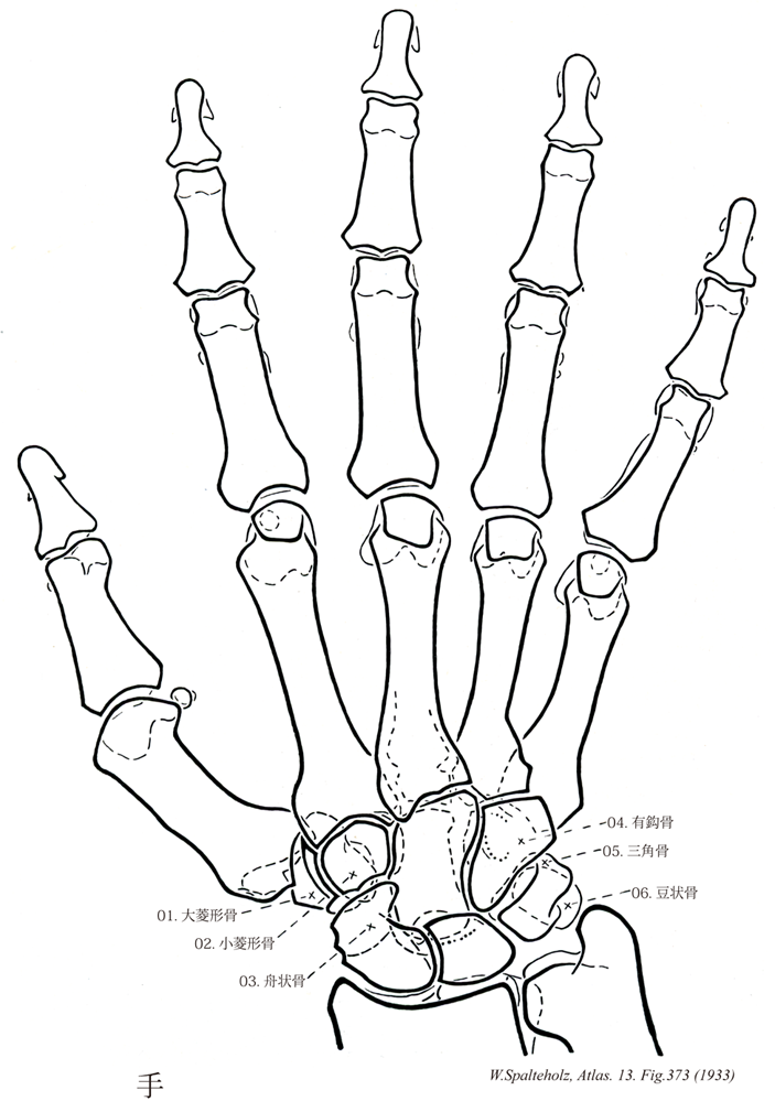 - 373_03【Scaphoid bone舟状骨(手の) Os scaphoideum; Os naviculare manus】 Bone situated between the lunate and trapezium.