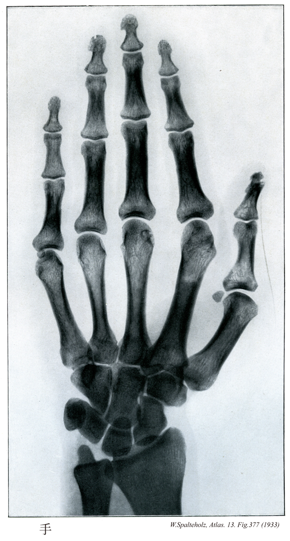 →(手は上肢のうち橈骨手根関節より遠位の部分。手根と中手に区別され、手根と中手の前面を手掌、後面を手背という。皮膚節において第六頚神経、第七頚神経、第八頚神経のレベル。)