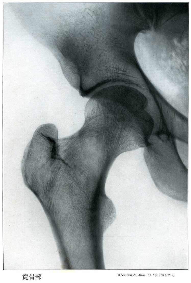 →(腰から大腿へかけての骨盤部外側の隆起、大腿骨の骨頭、頚部と大・小転子をさす。また股関節を含めた身体の部分、同じくおおまかに股関節を指しても使われる。)