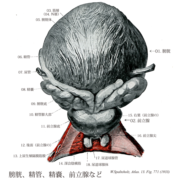 - 771_11【Base of prostate前立腺底;膀胱面(前立腺の) Basis prostatae】 Part of the gland that is fused with the fundus of bladder.