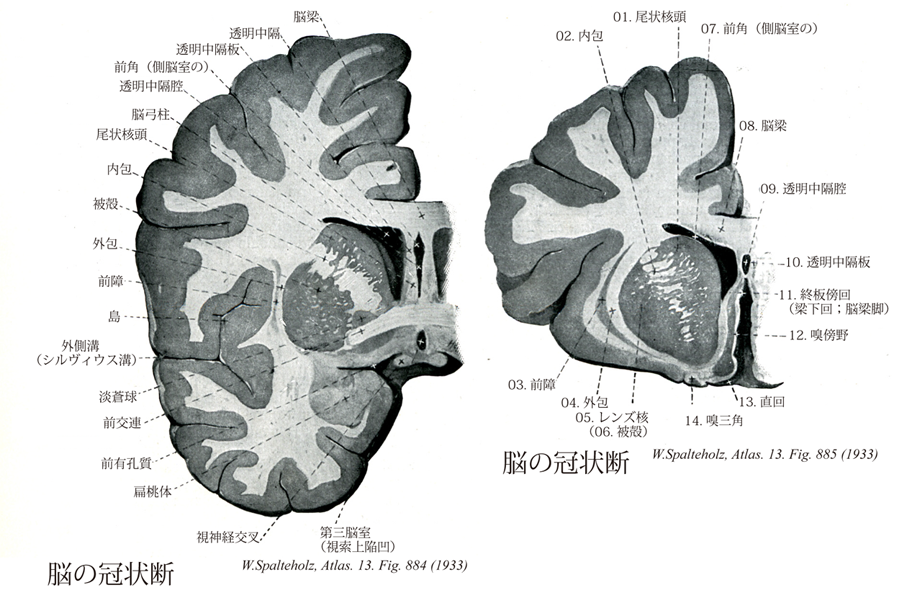- 885_01【Head of caudate nucleus尾状核頭 Caput nuclei caudati】 Anterior portion of the nucleus. It forms that lateral wall of the anterior horn of lateral ventricle.