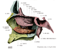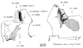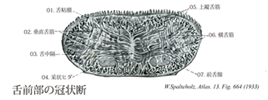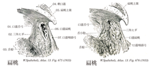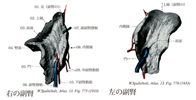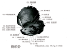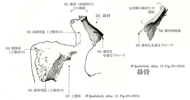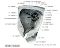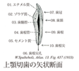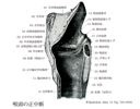 メニューは解剖学(TA)にリンクしてあります。図の番号をクリックすると下記の説明へ、右側の用語をクリックすると解剖学(TA)にジャンプします。